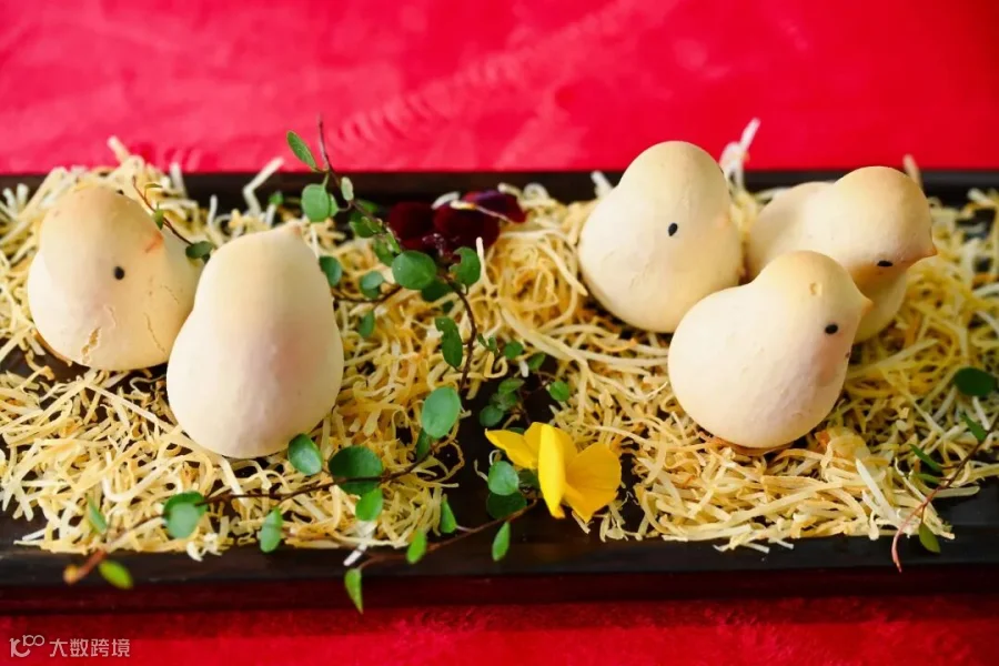 中式面点区同样看点十足,选手们揉面、擀皮、包馅的手法行云流水,指尖翻飞间尽是技艺淬炼的深厚功底。制作“黄埔蛋”的师傅,铁勺舀起金黄蛋液,入热油锅的刹那“噼啪”轻响,眨眼间便凝成薄如蝉翼的金黄蛋片,软嫩得能透见光影;捏制酥点的师傅,千层酥入油锅后次第绽开蜂巢般的细孔,糖丝拉出的天鹅酥最是惊艳,颈项纤巧优雅,翅尖洒落的金粉在射灯下闪烁,恍若要从案头振翅……