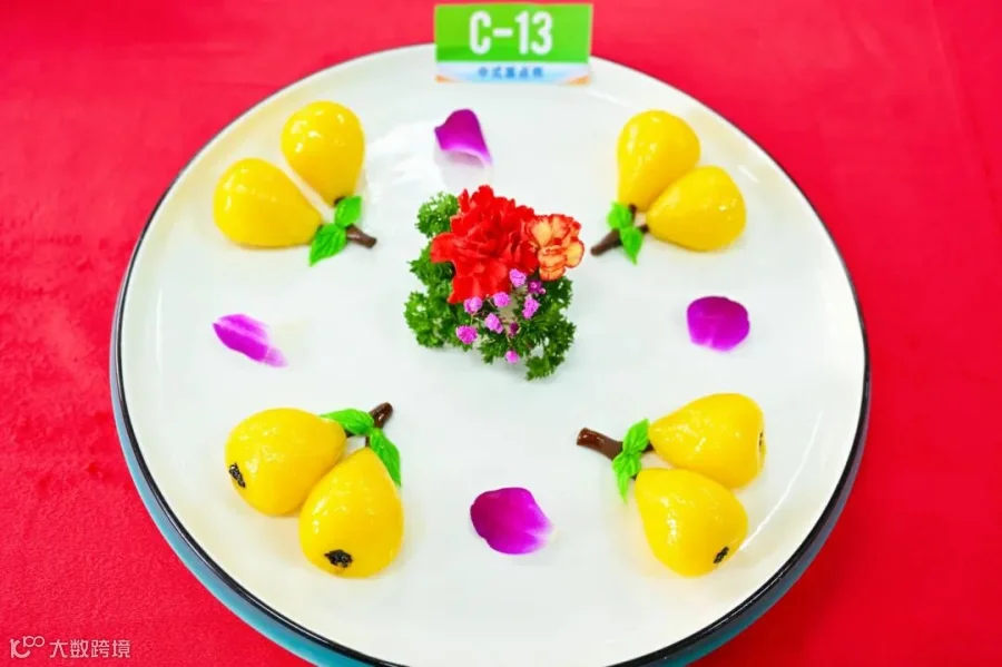 如果说中式烹调师是“全能技艺大考”,那中式面点师赛场则堪称“美学与健康的双重修炼”,选手们需在同样的150分钟内完成三款面点,围绕“健康、绿色、美观”主题,至少运用蒸、煎、烤、炸中的两种方式对面点进行加热,而且必须有一款是黄埔特色小吃,全方位展现工艺多元性。
