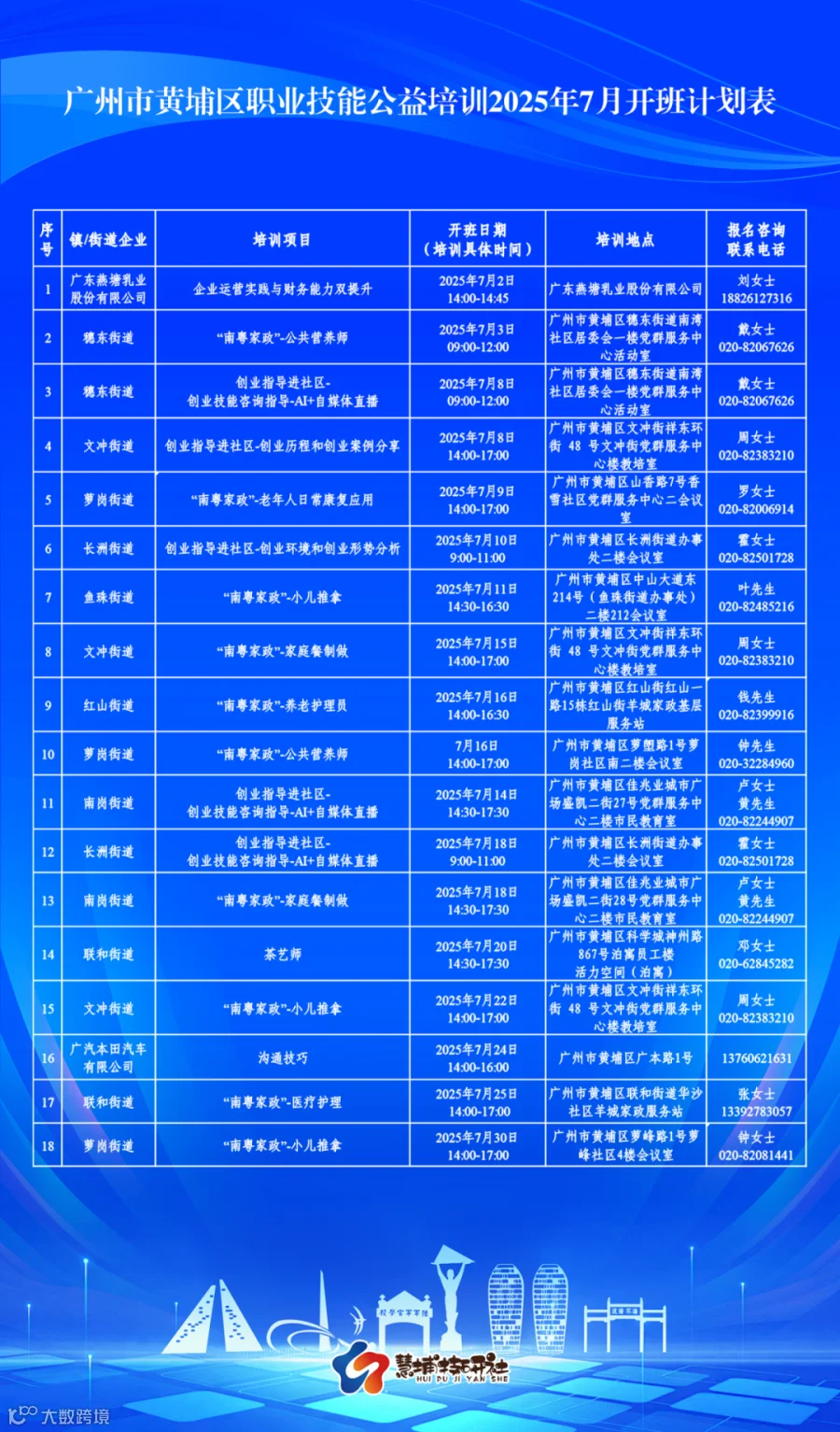 ▲上下滑动,查看黄埔区职业技能公益培训2025年7月开班计划表,培训安排最终以实际开展为准