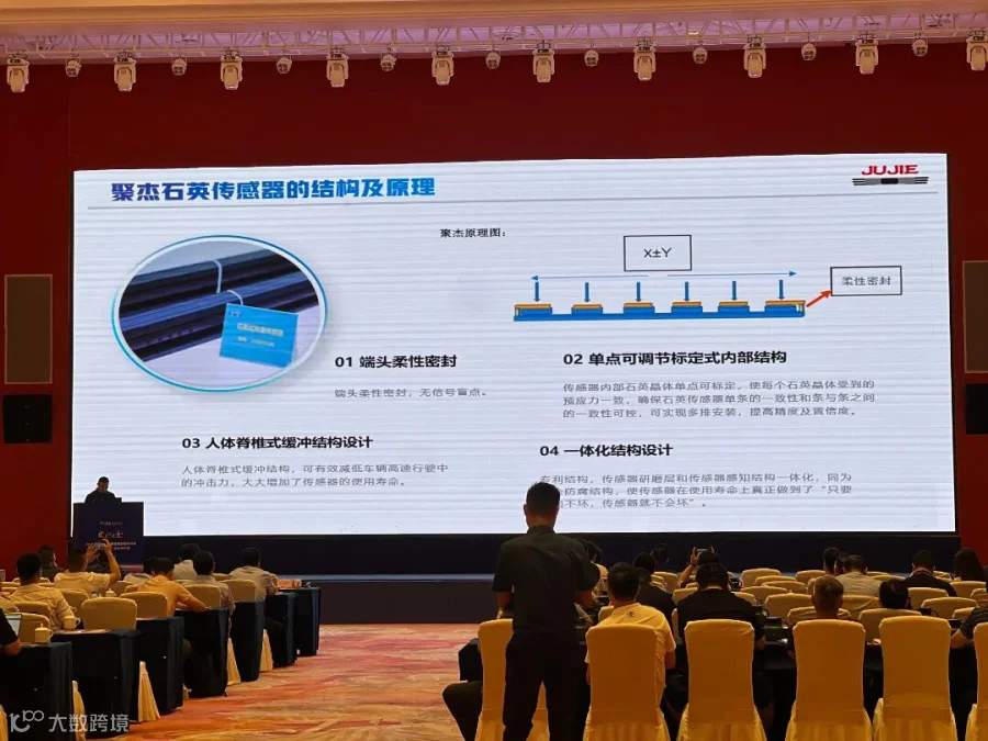 本次大会还举办了数字化治超、综合治理等五个专题论坛,为与会者提供了深入交流与学习的平台。聚杰智能技术总监杨二来先生以石英式动态称重传感器现状及在治超领域应用情况作为本次经验分享主题,阐述聚杰智能在利用先进技术手段提升治超效率、提高动态称重精度及置信度、优化执法流程方面的成功经验,赢得与会者的热烈反响。