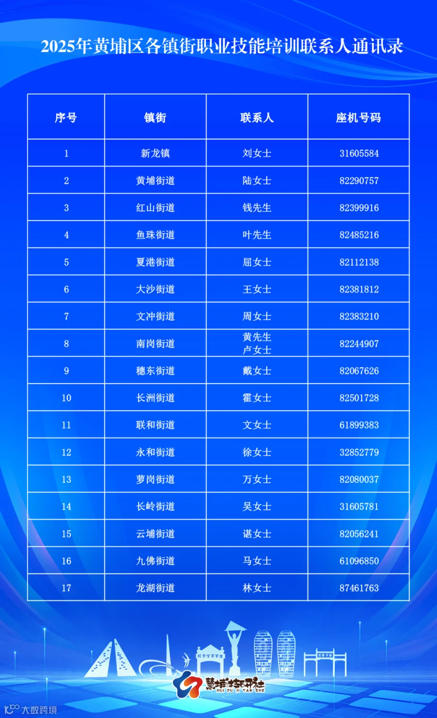 ▲上下滑动,查看2025年黄埔区各镇街职业技能培训联系人通讯录