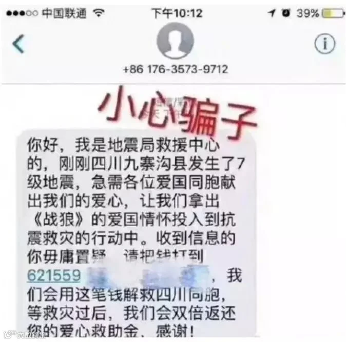根据防骗各大数据的总结,一天之内和九寨沟地震相关的诈骗短信便屡屡出现,而且快速出现各种流派。