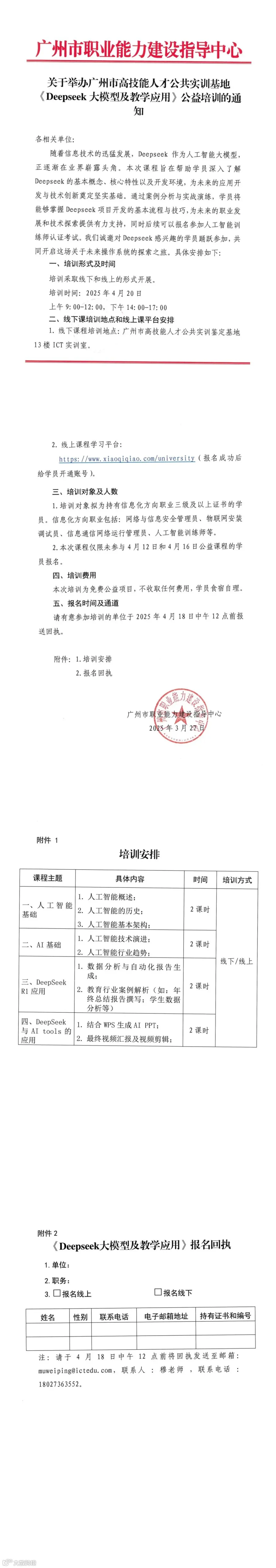 关于举办广州市高技能人才公共实训基地《Deepseek大模型及教学应用》公益培训的通知.pdf