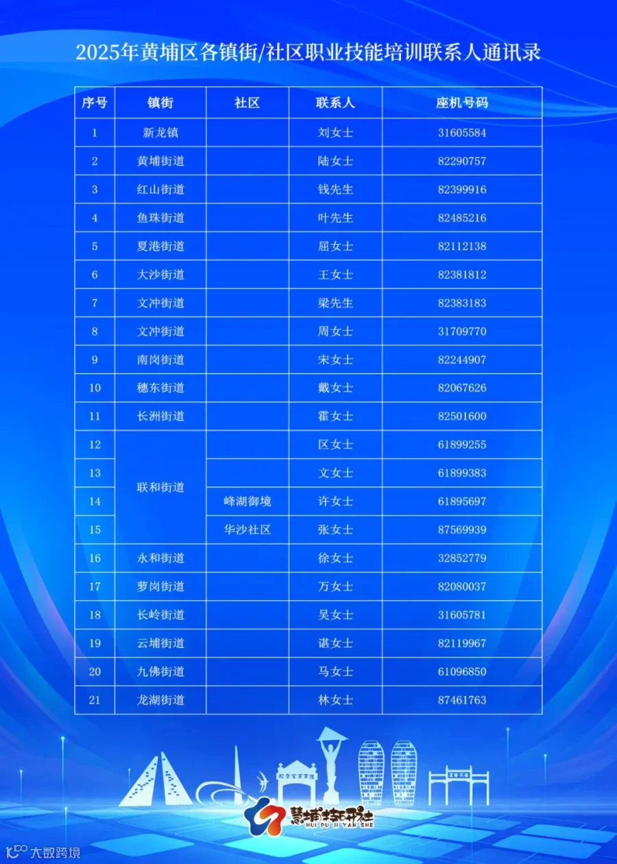 ▲上下滑动,查看2025年黄埔区各镇街/社区职业技能培训联系人通讯录