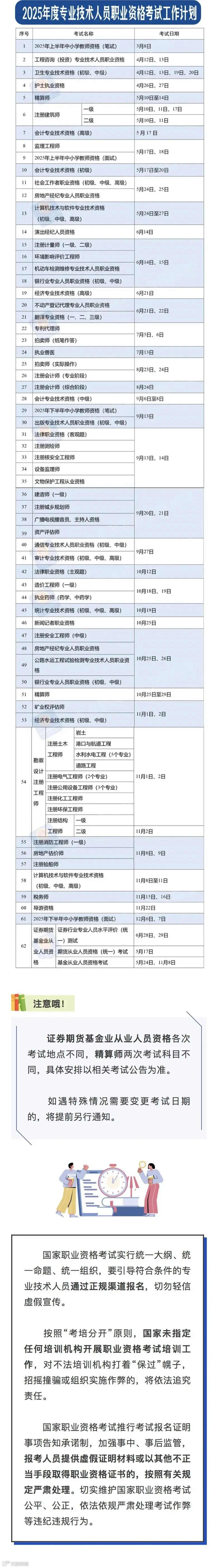 黄埔职建近日,人力资源社会保障部办公厅印发《关于2025年度专业技术人员职业资格考试工作计划及有关事项的通知》。