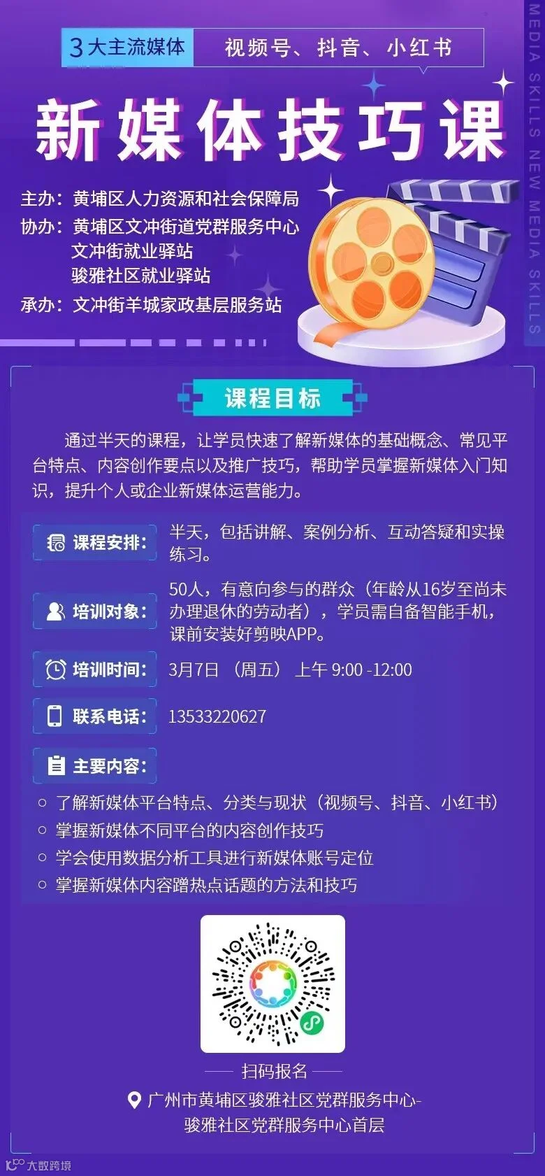 想玩转抖音、小红书、视频号却无从下手?或者渴望提升新媒体运营能力,助力职场或创业?文冲街新媒体技巧培训来啦!半天时间,干货满满,助你从小白变身运营达人!