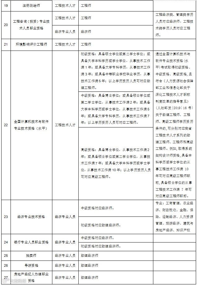 答:除法律法规对学历要求有规定的系列(专业)外,在我省职称评审工作中,技工院校中级技工班毕业生与中专学历人员同等对待,高级工班毕业生与大专学历人员同等对待,预备技师(技师)班毕业生与本科学历人员同等对待。