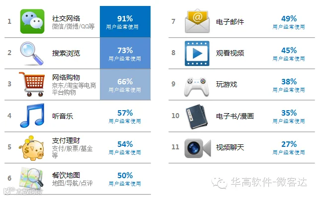 1、移动用户经常使用哪些应用?