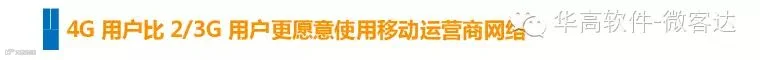2、在这些应用的使用上,4G用户比2/3G用户更加活跃。因此吸引用户迁移至4G能带来更多的流量消费。