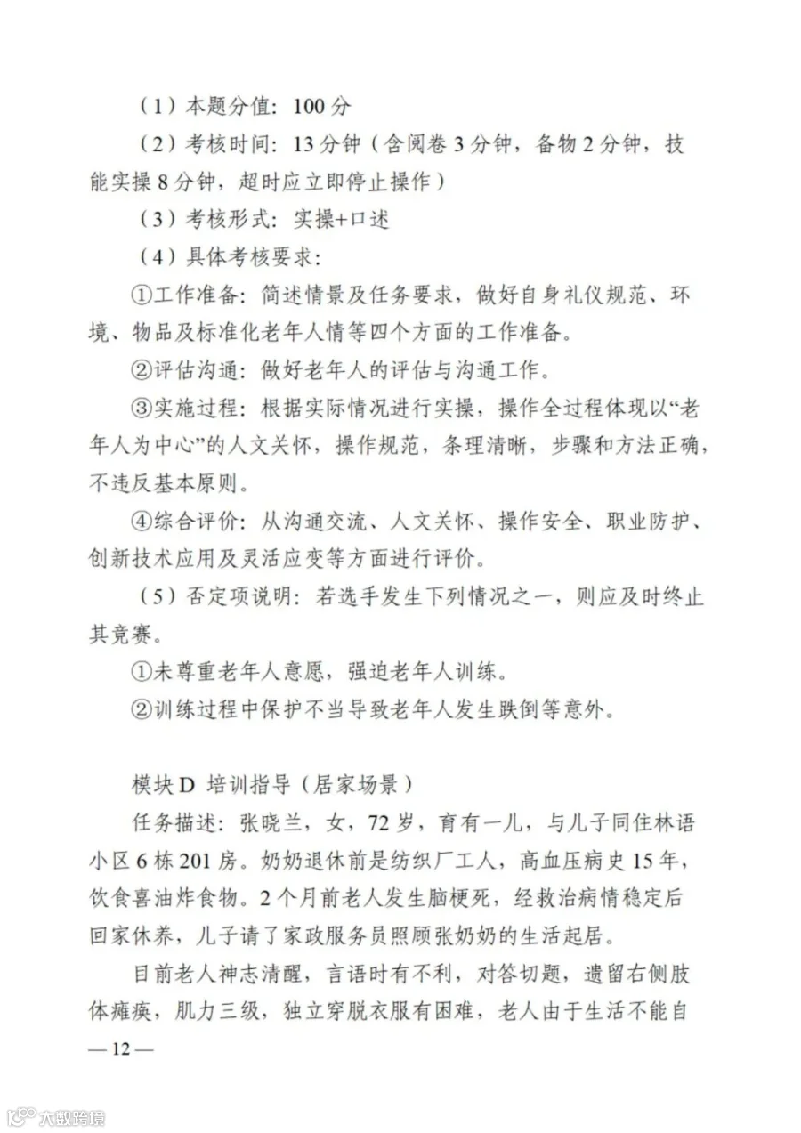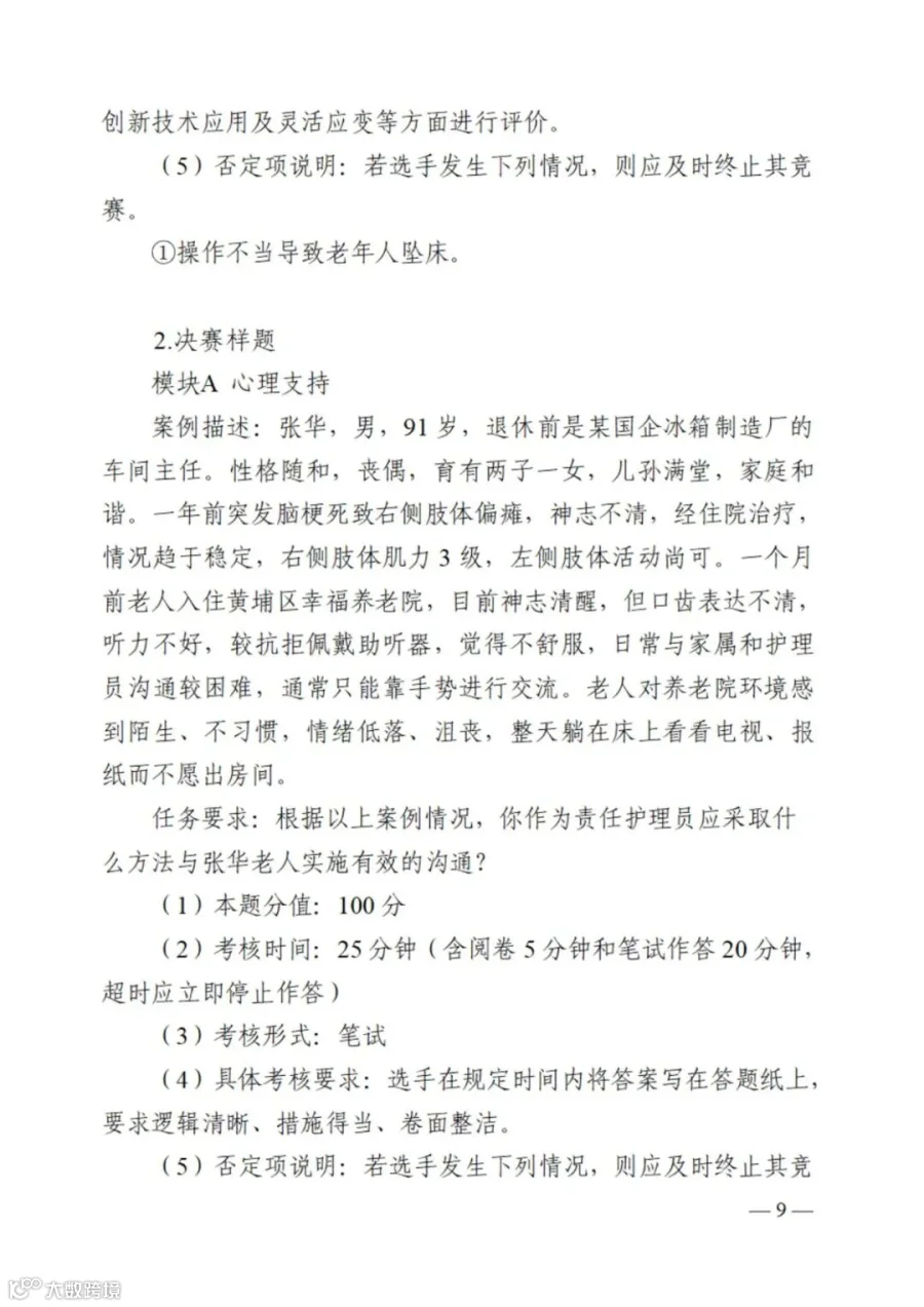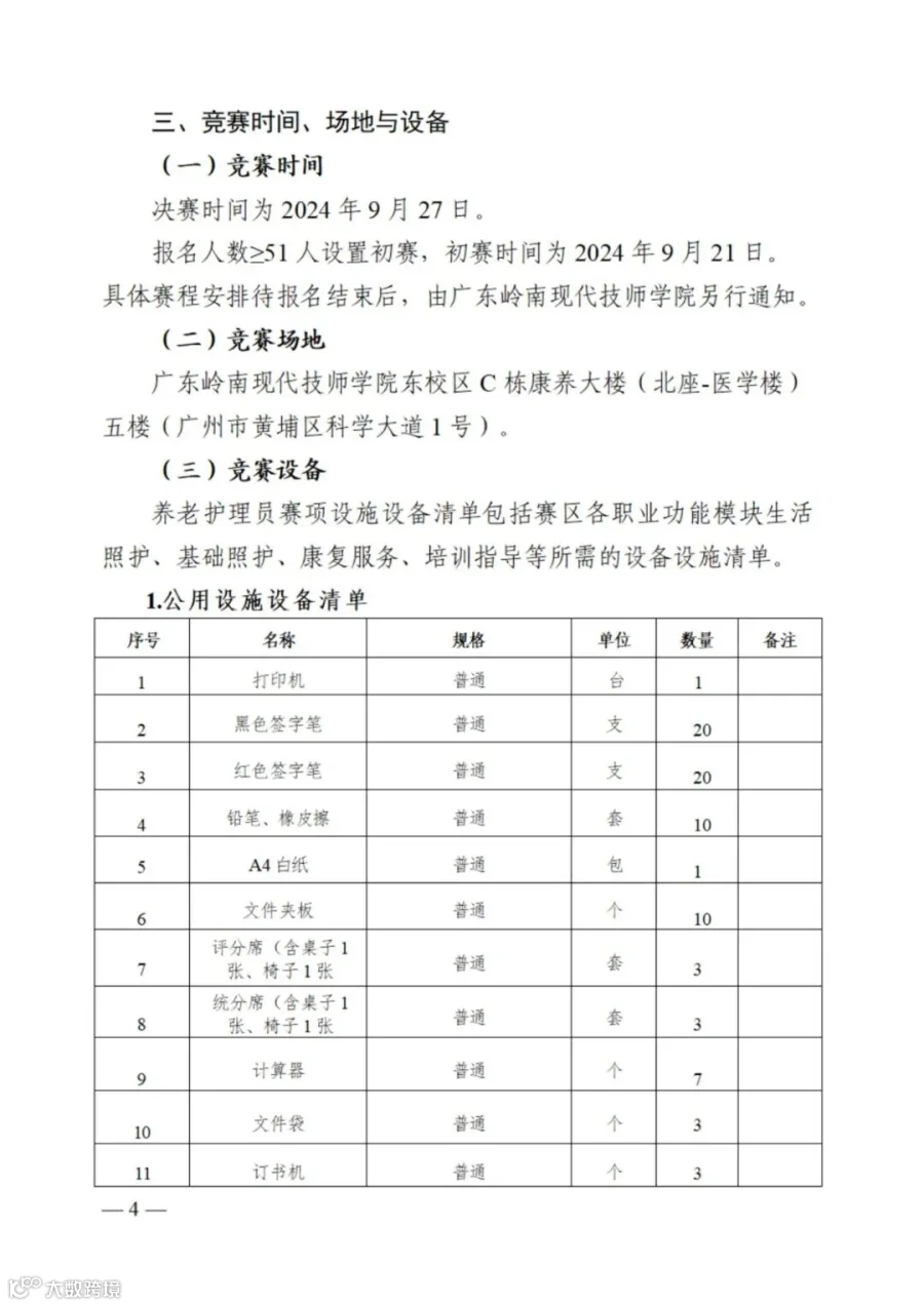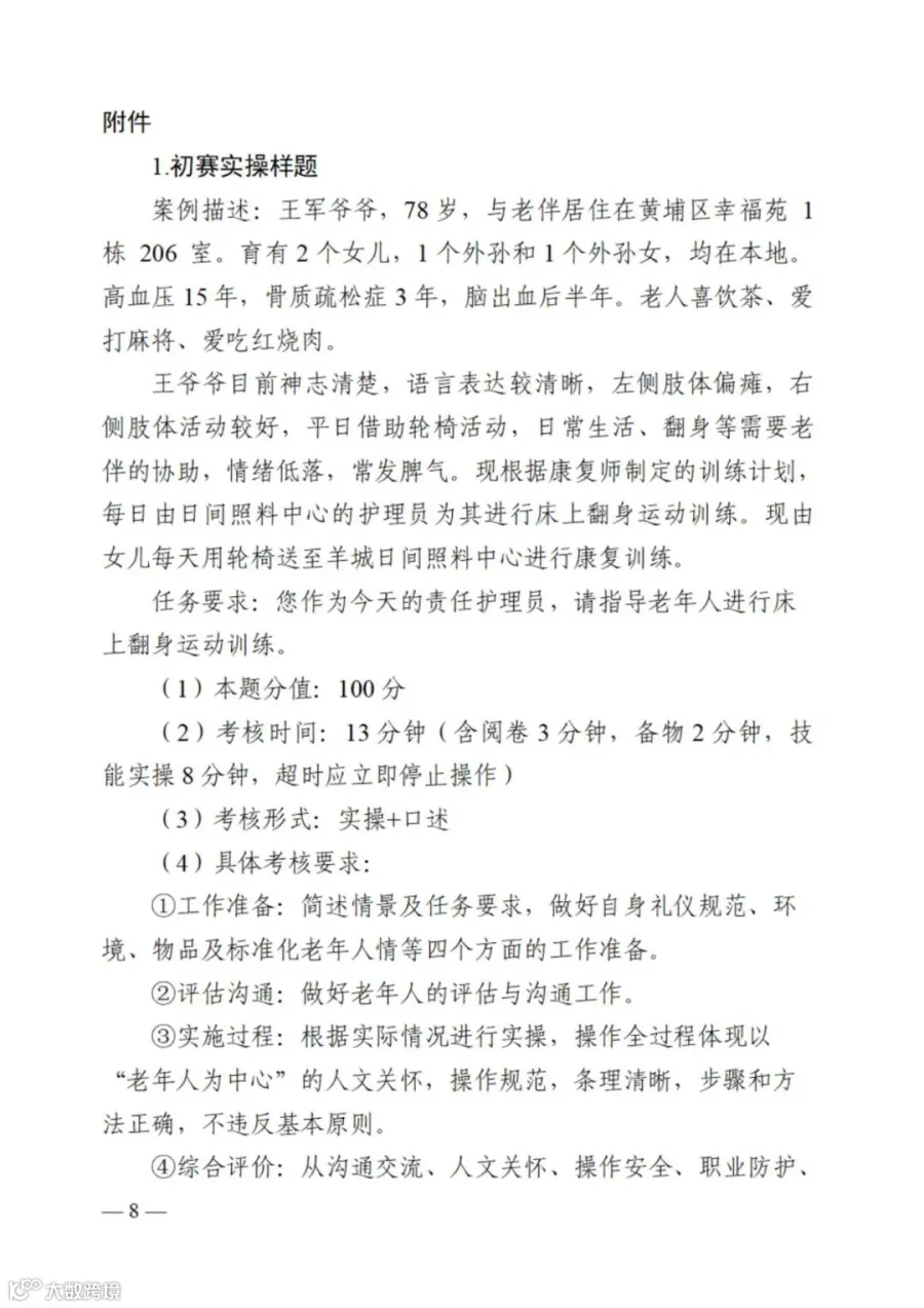 2024年广州开发区 广州市黄埔区第十六届职业技能竞赛养老护理员竞赛项目技术文件