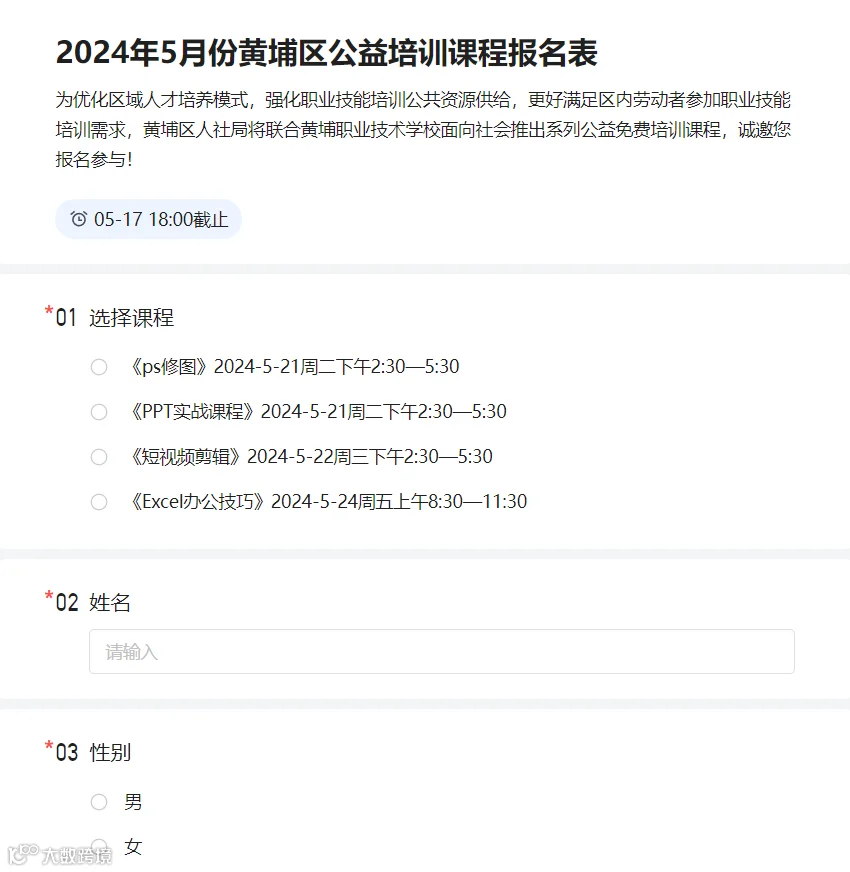黄埔区公益培训课程