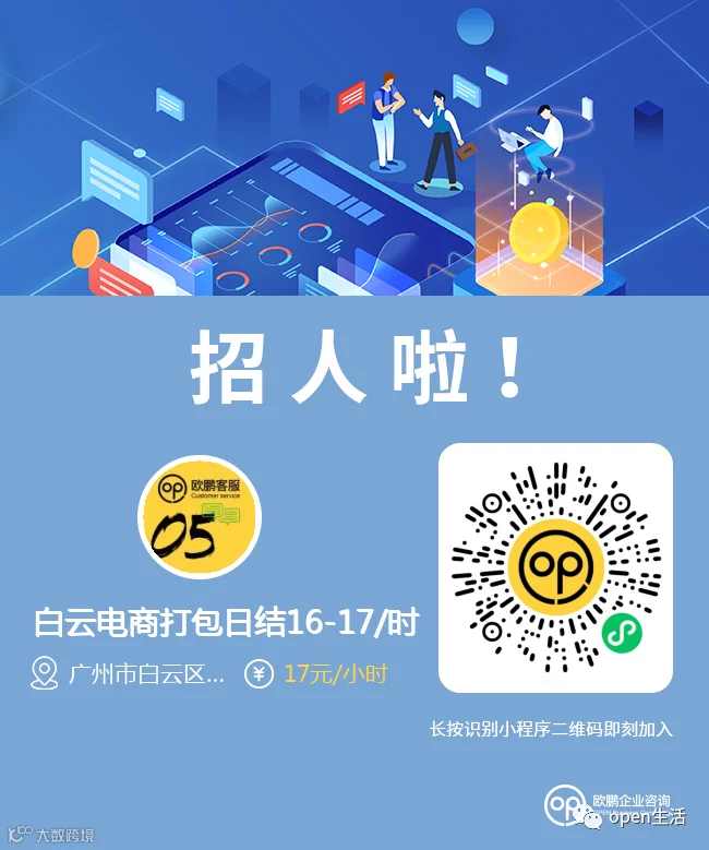 欧鹏生活服务电商打包招临时工16-17元一小时