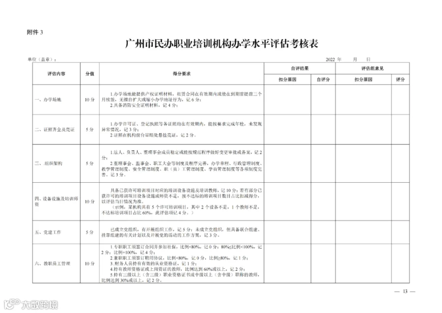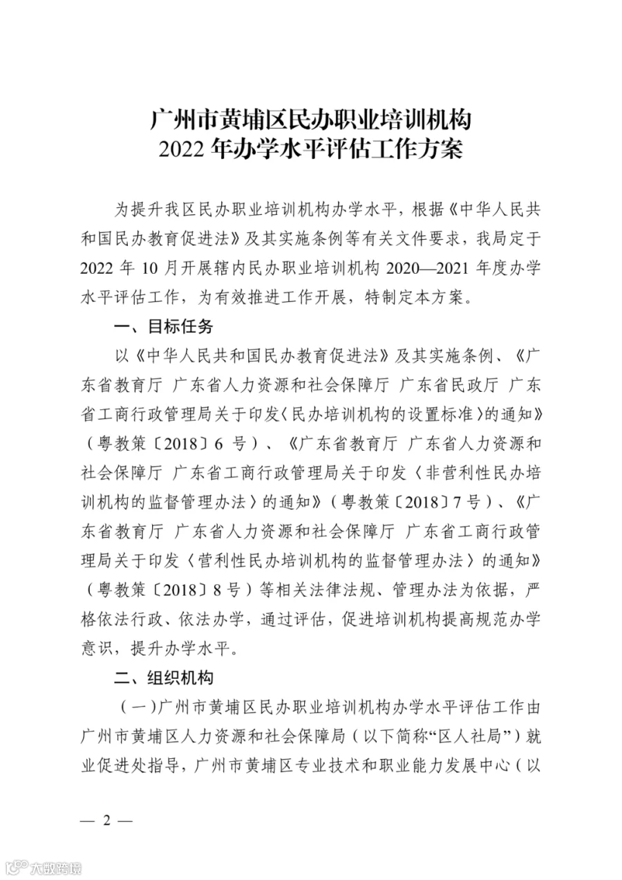 广州市黄埔区人力资源和社会保障局关于印发《广州市黄埔区民办职业培训机构2022年办学水平评估工作方案》的通知