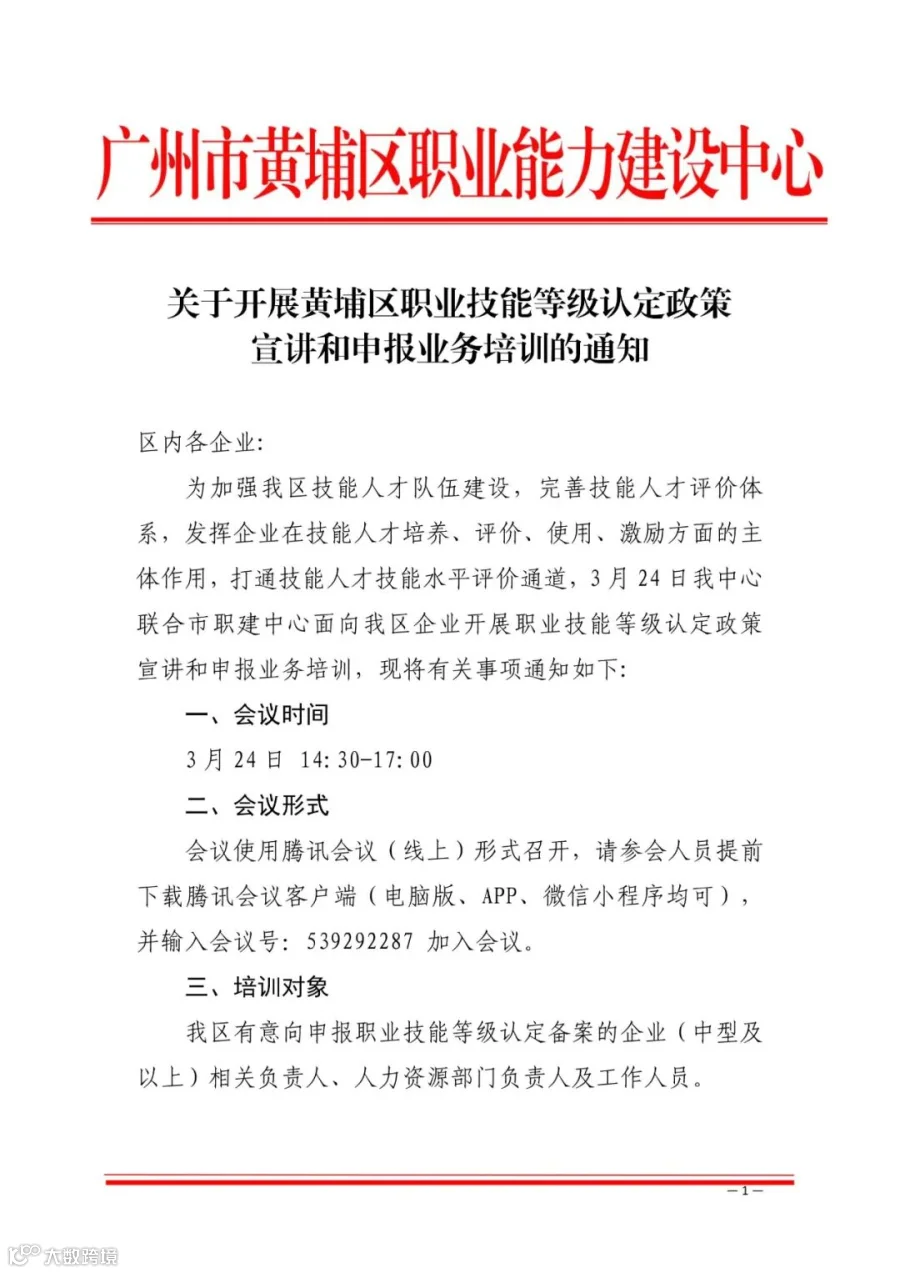关于开展黄埔区职业技能等级认定政策宣讲和申报业务培训的通知.pdf