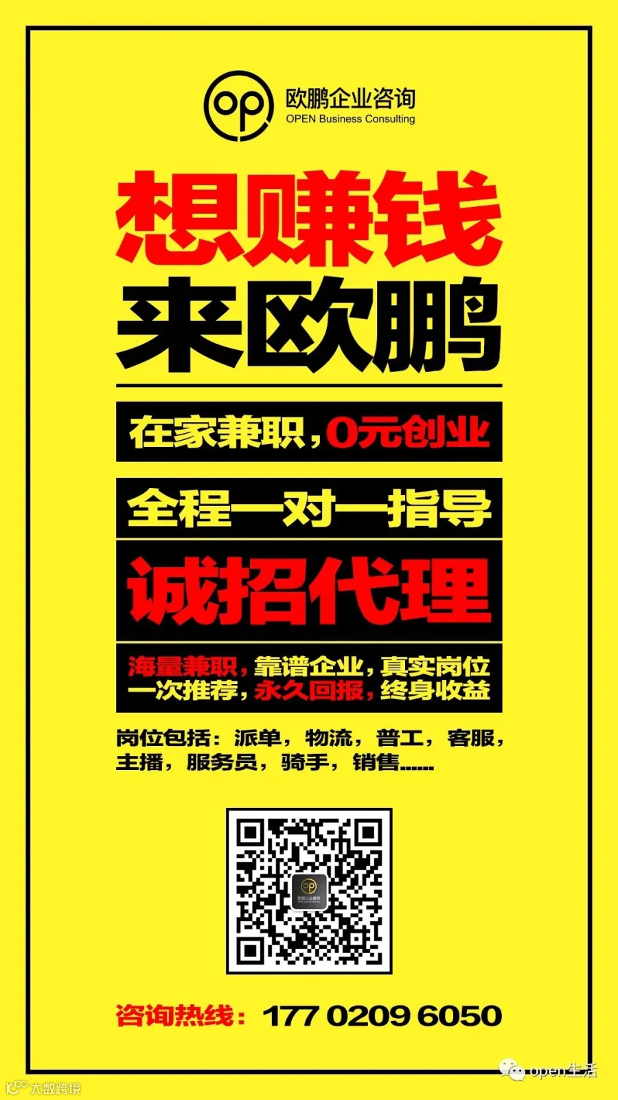 【月入3000-1000,上不封顶】欧鹏招推广员,多劳多得,终身收益