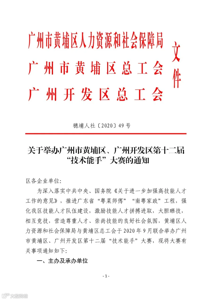 关于举办广州市黄埔区、广州开发区第十二届 “技术能手”大赛的通知