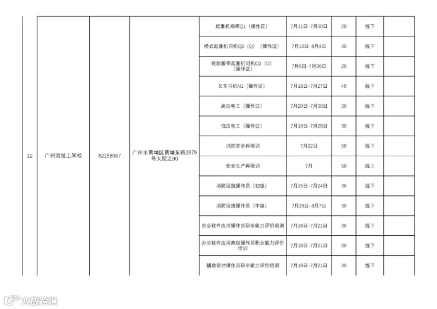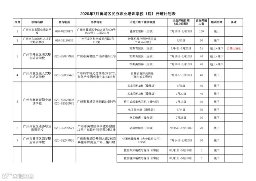 广州市黄埔区职业技能培训2020年7月开班计划通知