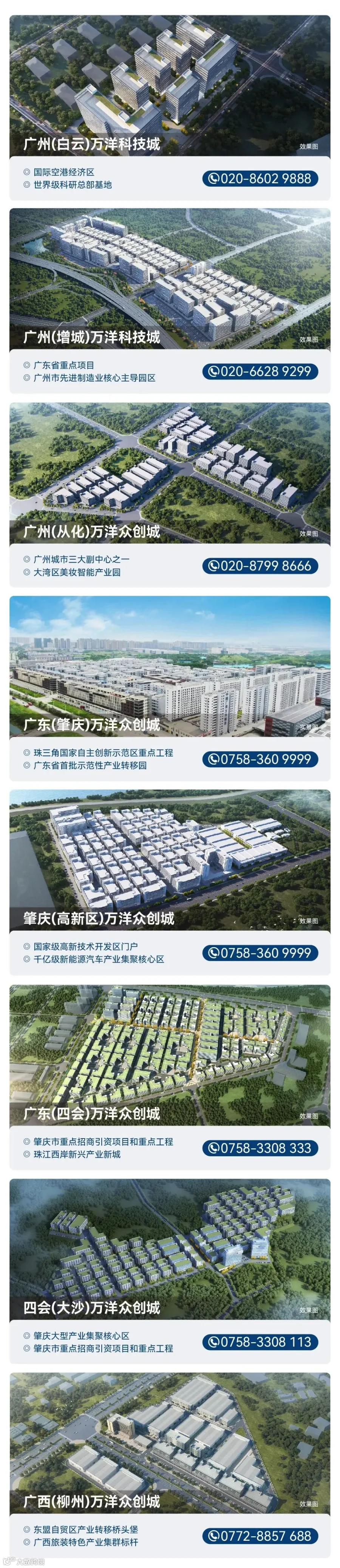 广州(从化)万洋众创城是万洋集团落地广州的第二个项目,项目位于从化主城区明珠工业园板块(宝珠大道与创业大道交汇处),占地面积约260亩,总建筑面积约41万方,共分三期开发,规划产业园区、人才公寓、生活超市、中央食堂等,致力于为园内蓝领提供优质、完善、便利的工作生活环境。项目计划总投资约20亿元,预计引进200家企业,提供10000个工作岗位。