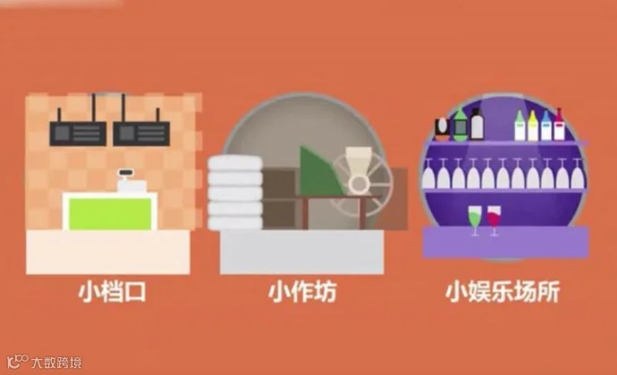 小档口:建筑面积在300平方米以下,具有销售、服务性质的商店、营业性的饮食店、汽车摩托车维修店、洗衣店等场所。