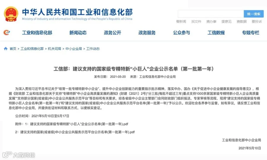 据《关于支持“专精特新”中小企业高质量发展的通知》,将通过中央财政资金引导,促进上下联动,将培优中小企业与做强产业相结合,加快培育一批专注于细分市场、聚焦主业、创新能力强、成长性好的专精特新“小巨人”企业,推动提升专精特新“小巨人”企业数量和质量,助力实体经济特别是制造业做实做强做优,提升产业链供应链稳定性和竞争力。