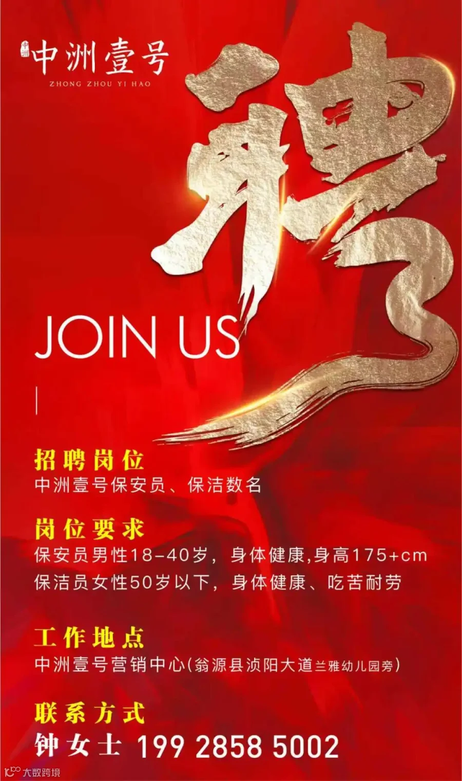 翁源中洲壹号丨诚聘保安员、保洁数名,有意者欢迎联系→