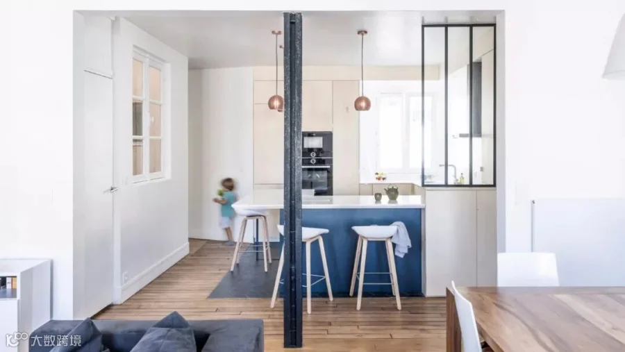Anne-Laure Dubois使用深蓝色瓷砖和杨木胶合板翻新了这间巴黎公寓。