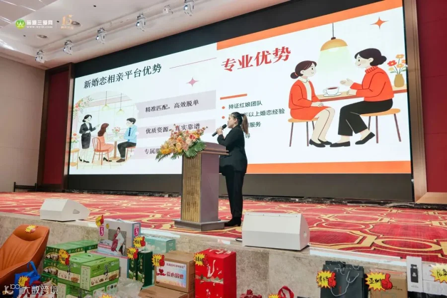 紧接着,三爱网相亲业务负责人莎莎老师登台,对三爱网相亲平台的服务理念与成果进行了精彩分享。