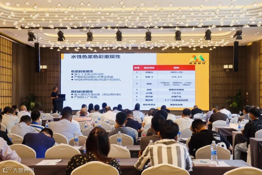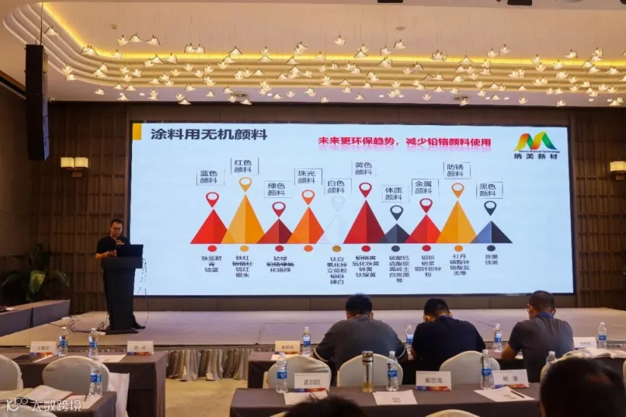 作为多彩涂料原材料的供应商,浙江纳美新材料股份有限公司色浆应用技术经理胡宇在本次活动中发表了关于“色浆发展趋势及在多彩涂料的应用”的技术讲座,重点分析了水性色浆的发展趋势以及在多彩涂料的应用。