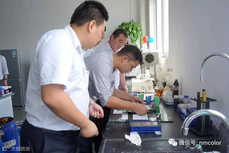 经销商们通过亲身体验,更全面地了解到产品从原料研发、检验对比、研磨、固色、生产流程全监控等每一道生产工序。此次参观提升了经销商们对产品品质的信心,进一步深化与纳美色浆的合作关系。应用中心王工耐心的为大家讲解乳胶漆调色检验。大家也都自己动手,尝试做了各类应用测试。