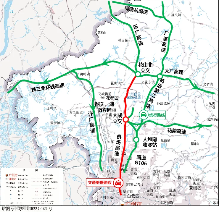 其中,为避开机场北立交、杨荷立交南行行车缓慢,建议大广高速返程旅客在从埔高速或从化收费站经国道G355,通过G105绕行进入市内。