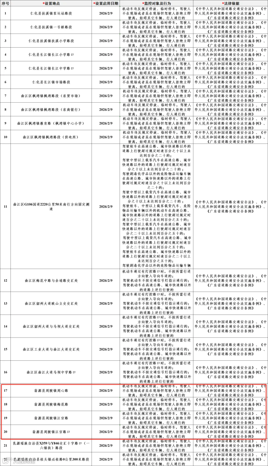 附件:韶关市道路新增交通技术监控设备设置地点(三十).xlsx