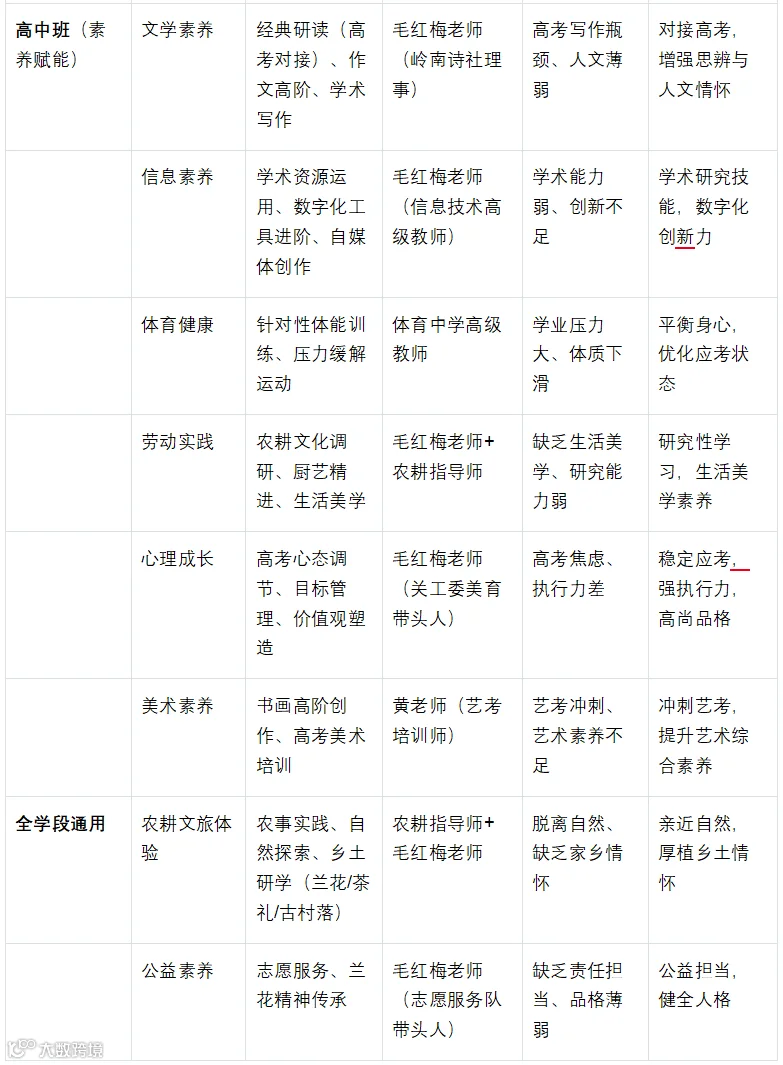 4 位中学骨干老师 + 文艺专家 + 农耕指导师:覆盖心理专项辅导、微视频制作(拍摄 + 剪辑)、农耕文旅体验等全科目教学 -