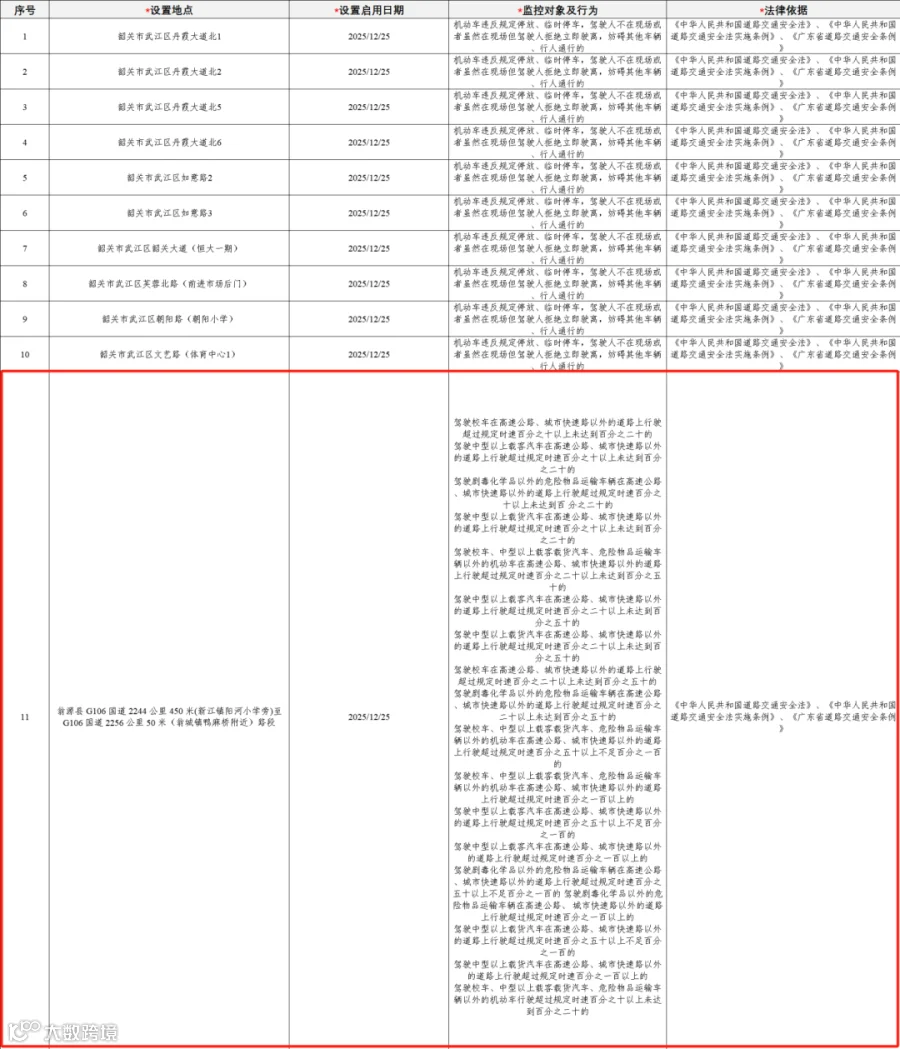 附件:韶关市道路新增交通技术监控设备设置地点(二十九).xlsx