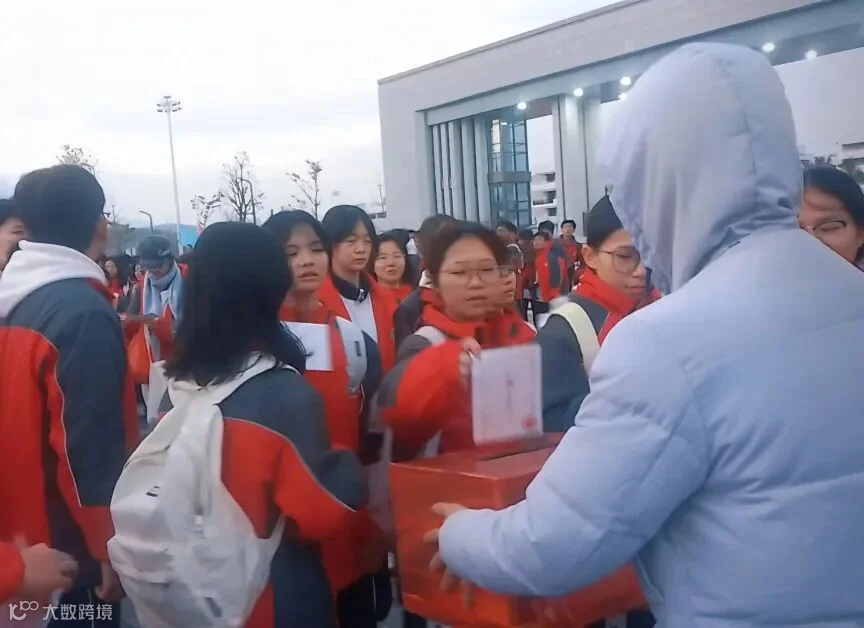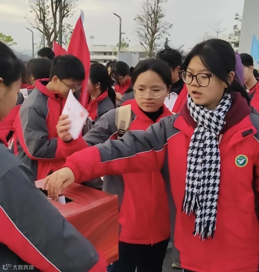 校门旁的投信箱前,同学们将写给十年后的自己的信件轻轻封缄,把青春的誓言、对未来的期许,一并封存。