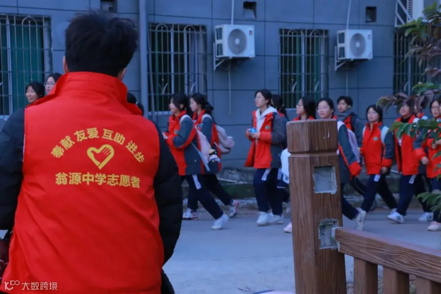 沿途,身着红马甲的师生志愿者与交警同志早已坚守各路口,为这支青春队伍保驾护航。