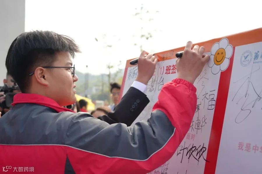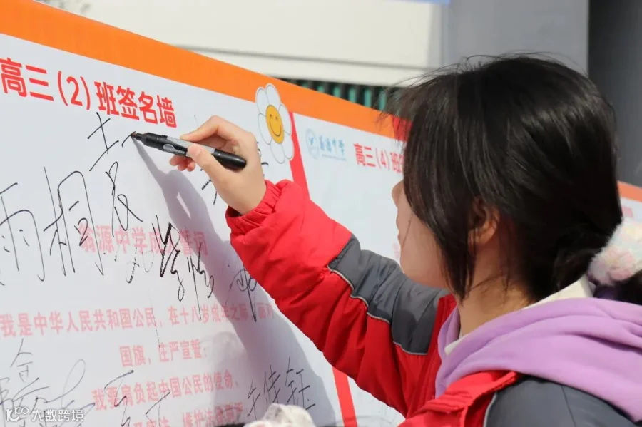 签名墙上,学子们挥毫泼墨,写下自己的名字,这既是青春的印章,更是对未来的郑重承诺。