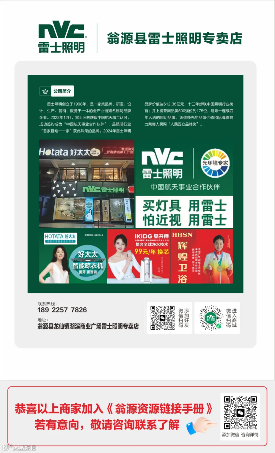 目前订阅的翁源商家有:平安保险、亚树电器、海棠沙发、星艺装修、新新电器,这些品牌老店,也有马可波罗、雷士照明、恒洁卫浴、莱卡家具、京东家电家居、安吉尔净水器等知名品牌。