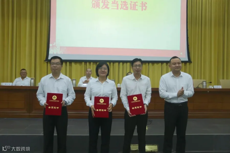 县政协党组成员、秘书长官国添同志为新当选的监事长颁发证书