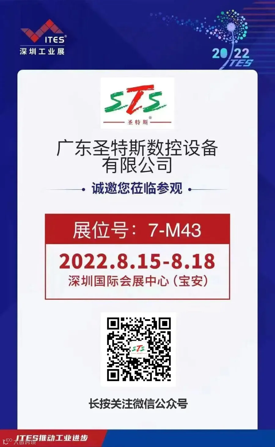 2022年8月15日至18日第23届深圳国际机械制造工业展览会,广东圣特斯数控设备有限公司于深圳国际会展中心7-M43号展位共同展出,届时圣特斯展位期待您的莅临!