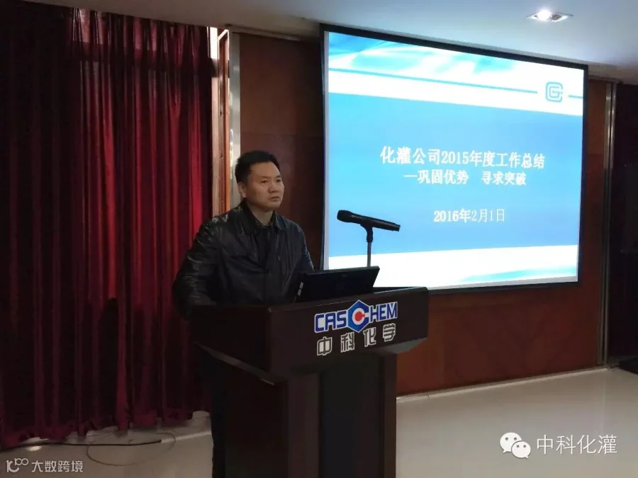 2016年2月1日下午,中科院广州化灌工程有限公司(化灌公司)召开了2015年度工作总结表彰大会,大股东中科院广州化学有限公司(广州化学)董事长及化灌公司董事长胡美龙、广州化学总经理吕满庚出席了会议,化灌公司经营班子及在职员工参加了大会,会议由化灌公司党支部书记陈瀚霖主持。
