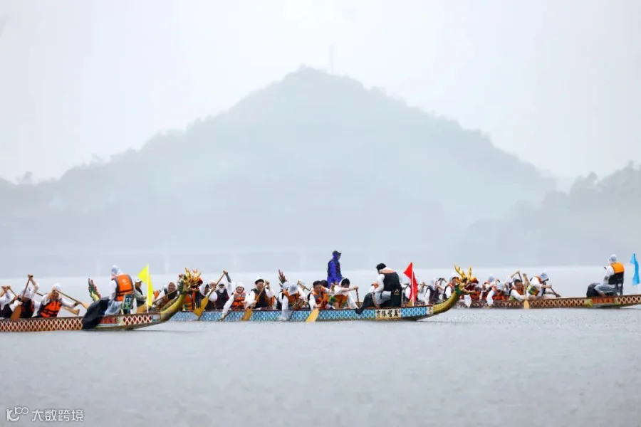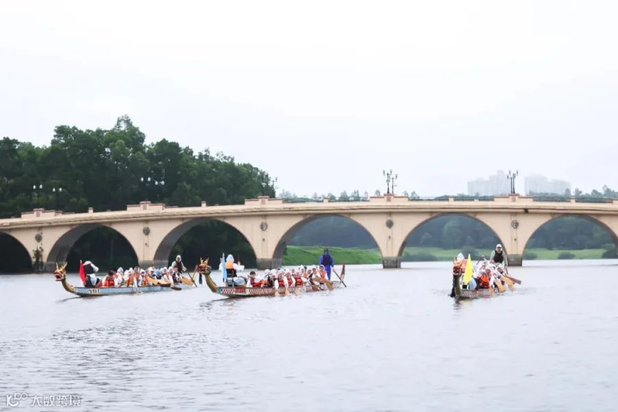 伴随着“嘟”的一声比赛鸣笛,刹那间,三艘龙舟如离弦之箭破浪而出、急速前进,平静湖面瞬间鼓声雷动、水花飞溅,各支队伍运动员同心奋力,挥臂划桨、提桨、破水,大家都使出浑身解数劈波斩浪、奋楫争先,现场水声、鼓声、欢呼声、呐喊声此起彼伏,速度与激情碰撞交织,酣畅与淋漓紧密相拥,场面十分热闹、壮观。燃!燃!燃!
