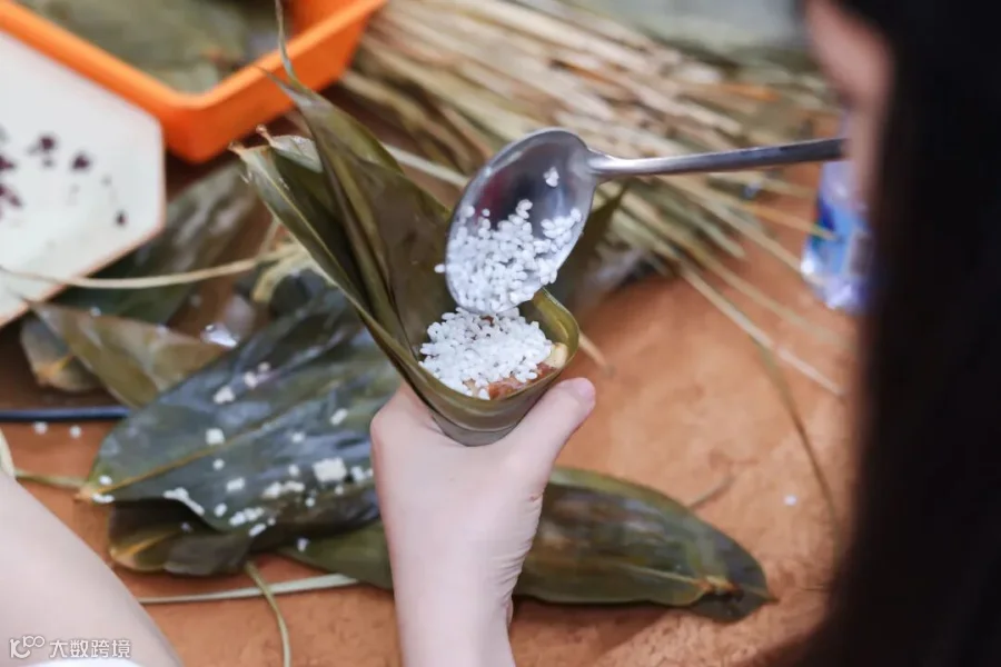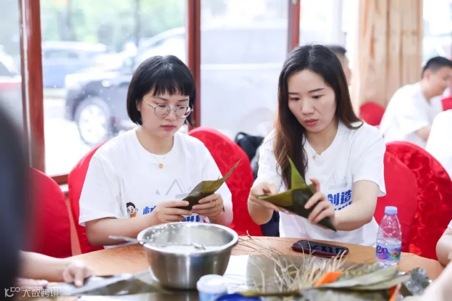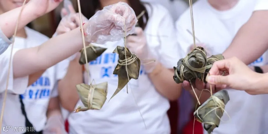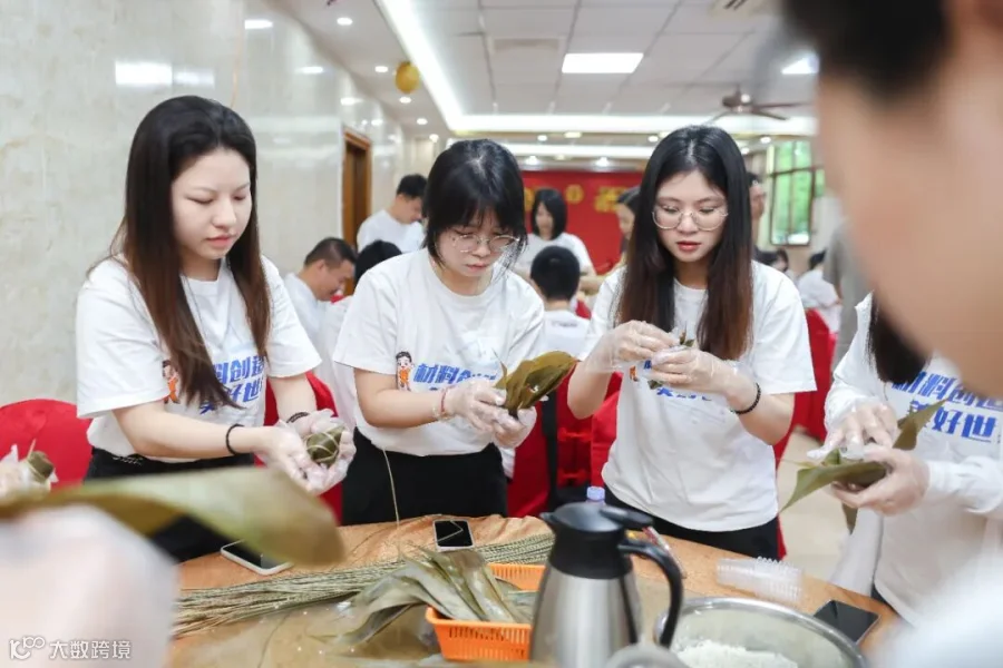 在龙舟竞渡活动前,全体员工开展包粽子趣味比拼,大家拿出各自看家本领,分组结对、同台比拼,捋粽叶、做漏斗,卷、填、压、捆,一气呵成,员工们巧手翻飞、交流鼓励、打趣互动,活动气氛温情、欢快。