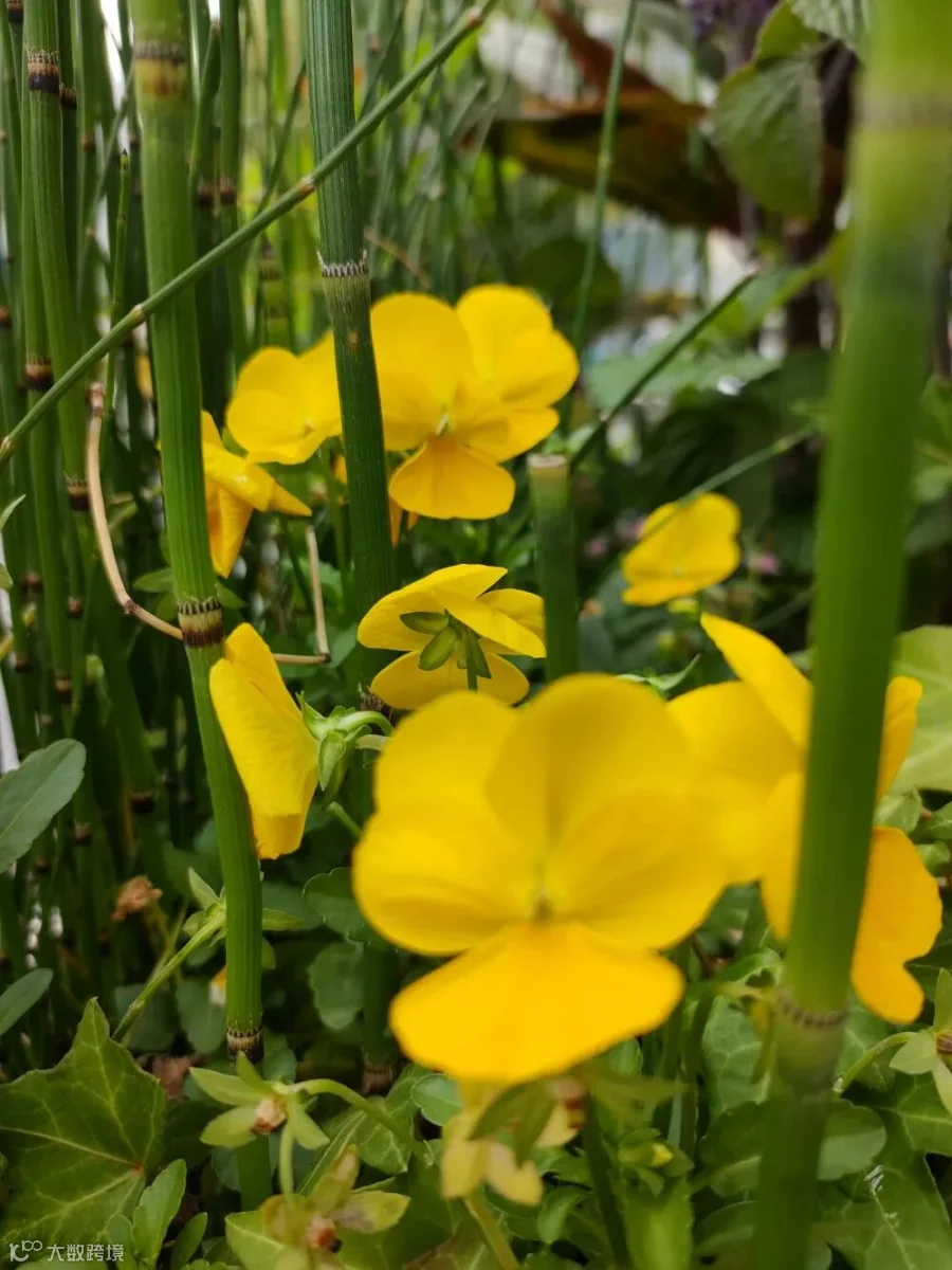 竹色溪下绿,角堇街边艳