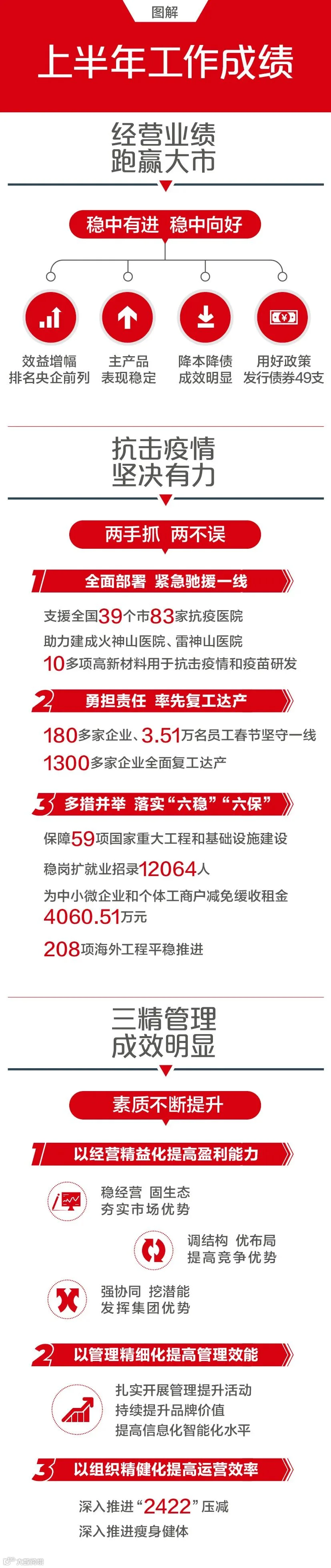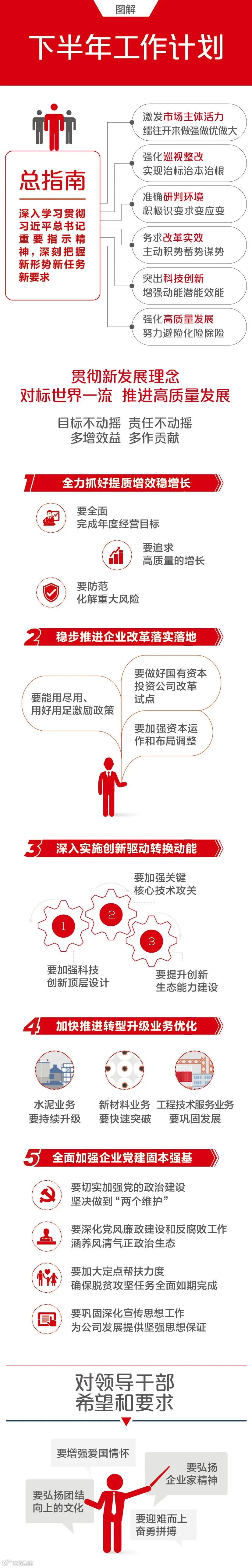 中建材物资有限公司7月24日,中国建材集团召开了2020年上半年工作视频电话会议。会议信息量很大、含金量很高、干货很多!这次会议到底说了哪些重点内容?现特别整理,把大会主要内容汇集成一张图,让你轻轻松松看懂!