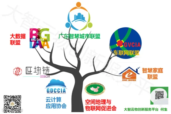 广东省云计算应用协会、广东智慧城市产业技术创新联盟、广东省车联网产业联盟、广东省区块链产业联盟、广州市空间地理信息与物联网促进会等社会组织聚合成大智云物链产业创新服务平台。