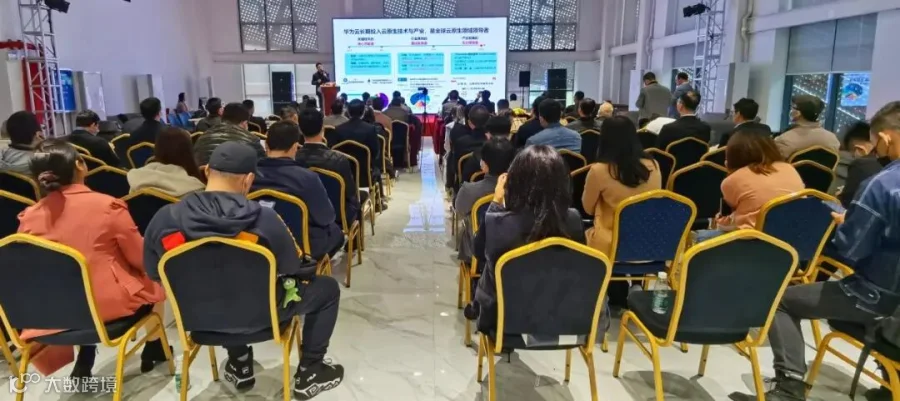 ▲华为云资深架构师严哲伦进行了“华为云-云原生翻开企业数字化转型新篇章”的主题演讲