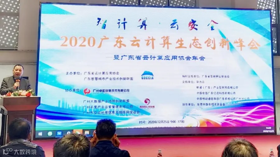2020年12月25日,会议主题为“智计算 · 云安全”的“广东云计算生态创新峰会”在广州市海珠区海珠智汇科技园隆重举办。活动由广东省云计算应用协会、广东智慧城市产业技术创新联盟主办,广州大数据产业协同创新联盟、广州千里产业运营管理有限公司、广州卓勤信息技术有限公司和广州市空间地理信息与物联网促进会协办,广东省互联网业联合会特别支持举办。