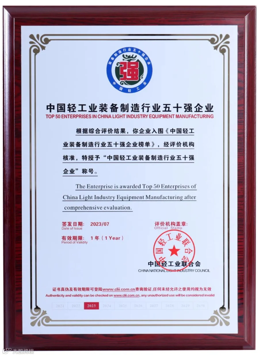 轻工装备制造行业五十强企业是行业的骨干力量,华研公司将认真贯彻国家制造强国战略部署,不断提高企业竞争力,为轻工行业高质量发展提供装备支撑,推动行业向高端化迈进!