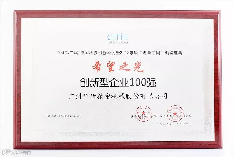 本届峰会打造2018年度排行榜,并颁发三大奖项:“匠心永恒——十大优秀科技工作者”“凝心铸业——十大科技创新风云人物”“希望之光——十大创新型企业”。广州华研精密机械股份有限公司荣获“希望之光——十大创新型企业”。 我司董事长包贺林先生荣获“凝心铸业——十大科技创新风云人物”。相信华研公司将继续发扬与践行科技创新精神,弘扬科技创新正能量。