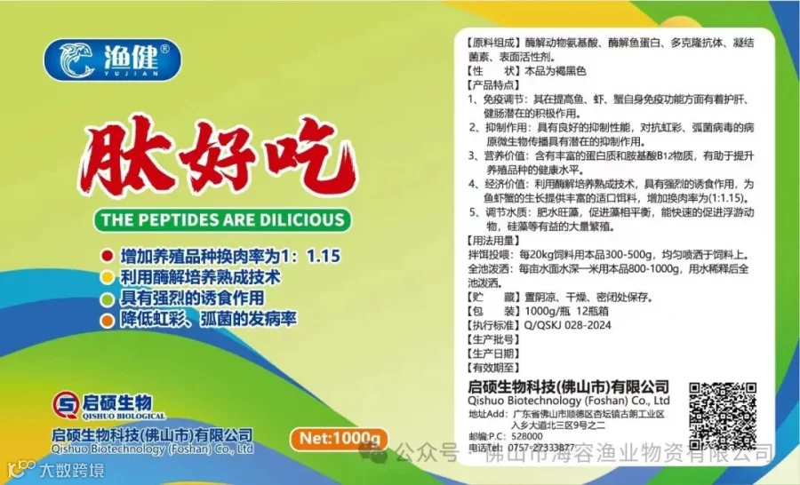4、经济价值:利用酶解培养熟成技术,具有强烈的诱食作用,为鱼虾蟹的生长提供丰富的适口饵料,增加换肉率为(1:1.15)。